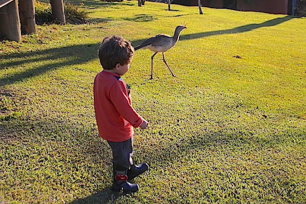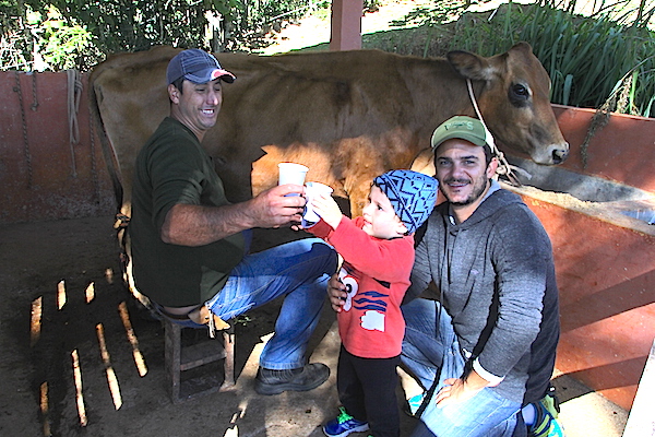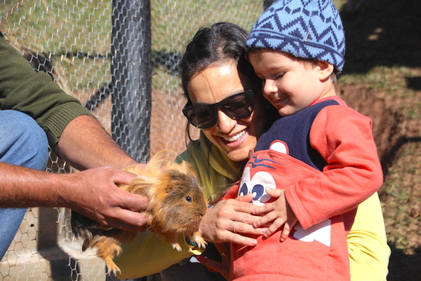 Pala manhã, ainda antes do café da manhã, levávamos Ian para a Fazendinha para ordenhar a Gaúcha, vaquinha que nos esperava junto a outros vários bichinhos. Lá começava a primeira parte do nosso café, tiramos leite num copo, pronto para beber e bem quentinho… dava até para escolher se queríamos com ou sem achocolatado, com ou sem espuma. Uma delícia poder passar por esta experiência! Imaginem a cara de felicidade do baixinho…