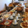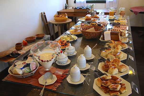 De volta para o Empório dos Pinhais (lugar reservado para servir refeições matinais), apreciamos o generoso café da manhã que A Quinta dos Pinhais oferece. Tem uma variedade de pães doces e salgados maravilhosos! Para completar ainda ofereciam outros tipos de doces, sucos, crepes, omeletes … e tudo feito com o maior capricho e organização! Não faltava nada!