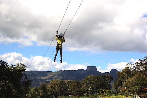 Fomos também à vizinha São Bento do Sapucaí e conhecemos o pessoal da Baú Ecoturismo que nos levou para fazer tirolesa e trekking com o Ian…