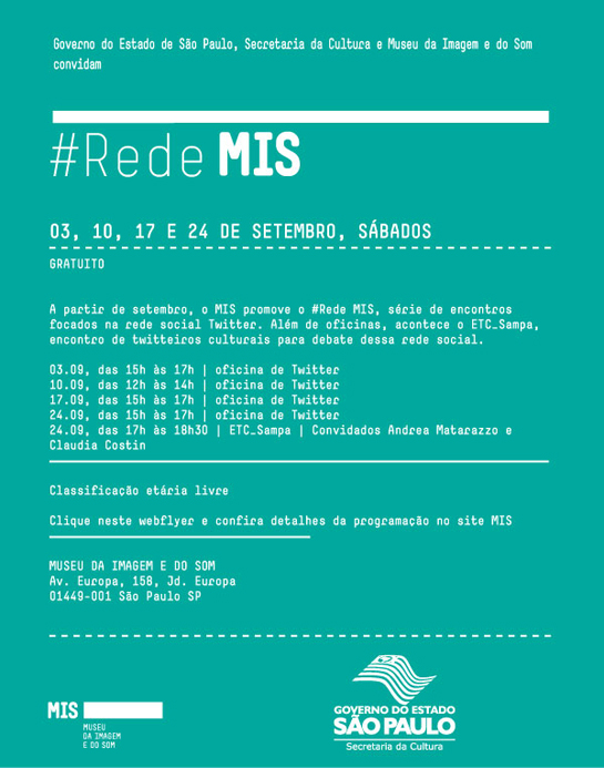 A partir de setembro o MIS promove uma série de encontros focados em novas mídias. Com atividades gratuitas, o programa #RedeMIS tem por objetivo levar ao público instruções atualizadas sobre como melhor aproveitar o uso das redes sociais.