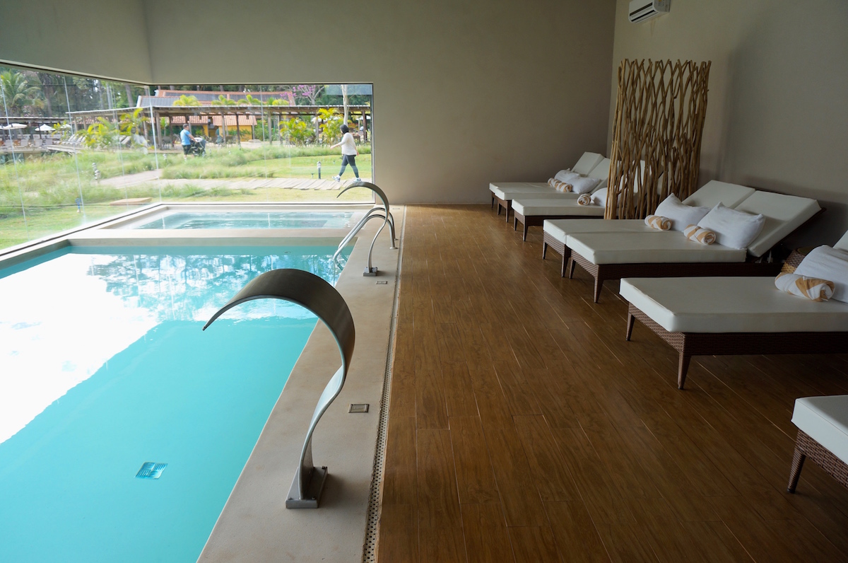 Na parte interna uma sala fitness moderna e completa, espaço para alongamento, cabeleireiro, manicure, salas de massagens, piscina climatizada e integrada com a sauna úmida e jacuzzi. O menu de massagem é extenso e eu selecionei a massagem fabulosa com karité. Se eu gostei? Ahh foram 90 minutos de relax total e no final uma grande sensação de bem estar.