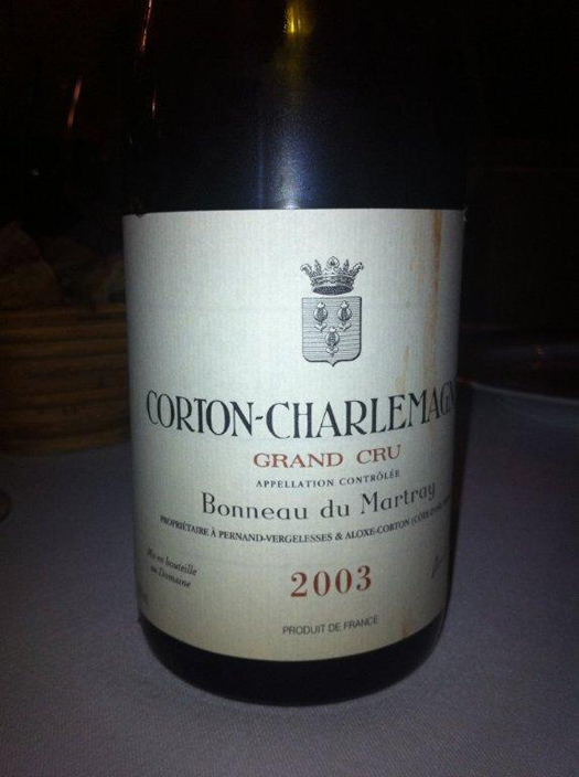 - O mítico Corton-Charlemagne 2003 da Domaine Bonneau du Martray