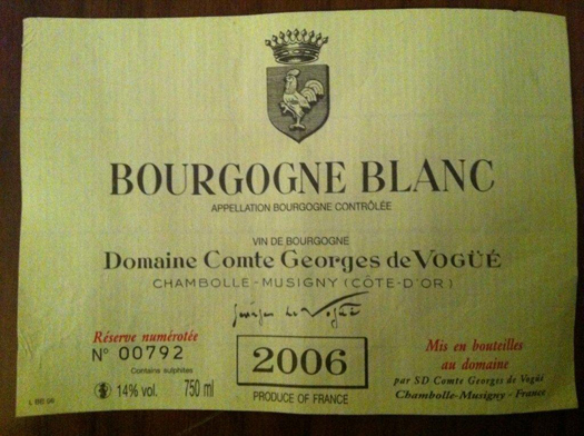 A área total das videiras de Chardonnay plantadas no vinhedo Musigny totaliza 0,6 hectares. Sendo que 0,4 hectares foram plantados no topo do vinhedo nos anos de 1986, 1987 e 1991. O restante de 0,2 hectares foi plantado em 1997. Tudo isso para dizer que meu ano de 2011 foi um ano de muitas realizações, pois tive o prazer de provar o Comte Georges de Vogüé Bourgogne Blanc 2006. Um branco ilustre, aristocrático, mineral e muito marcante. É mais encorpado e desafiador que seus rivais da Côte de Beaune.