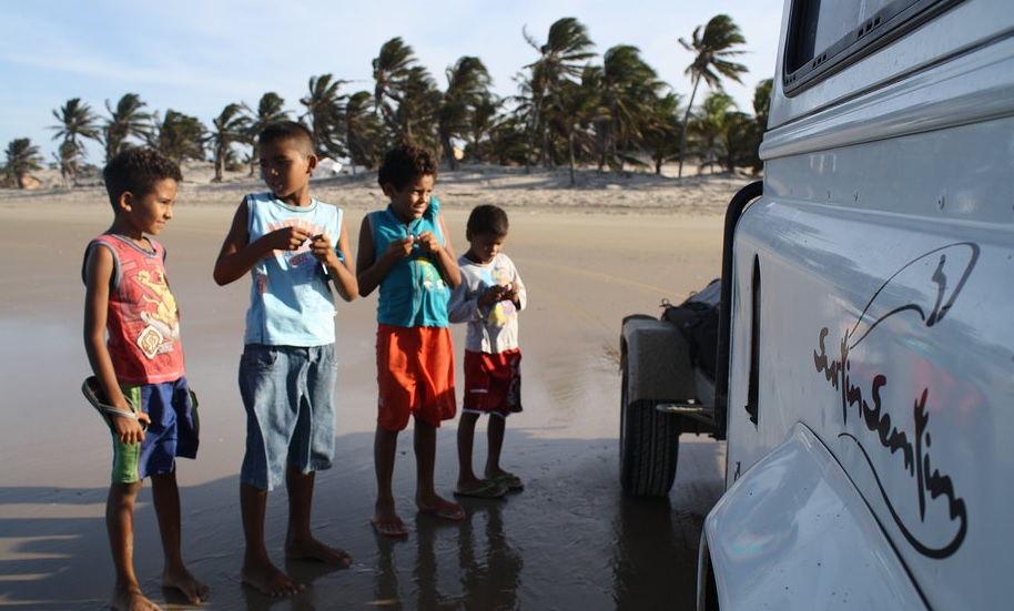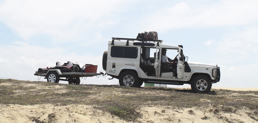 Alguns pontos não tem acesso pela praia, por isso existe sempre o acompanhamento de um guia na água, assim como o Spot GPS para acompanhar quando o carro tiver que fazer desvios.