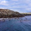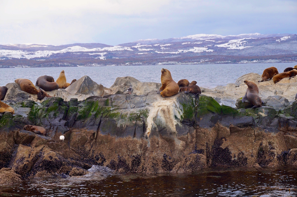 Logo a frente uma comunidade de focas, lobos e leões marinhos, e quando finalmente chegamos ao farol do fim do mundo uma grande surpresa nos esperava! Duas baleias começaram a fazer graça perto do nosso barco e todos correram para registrar o momento.