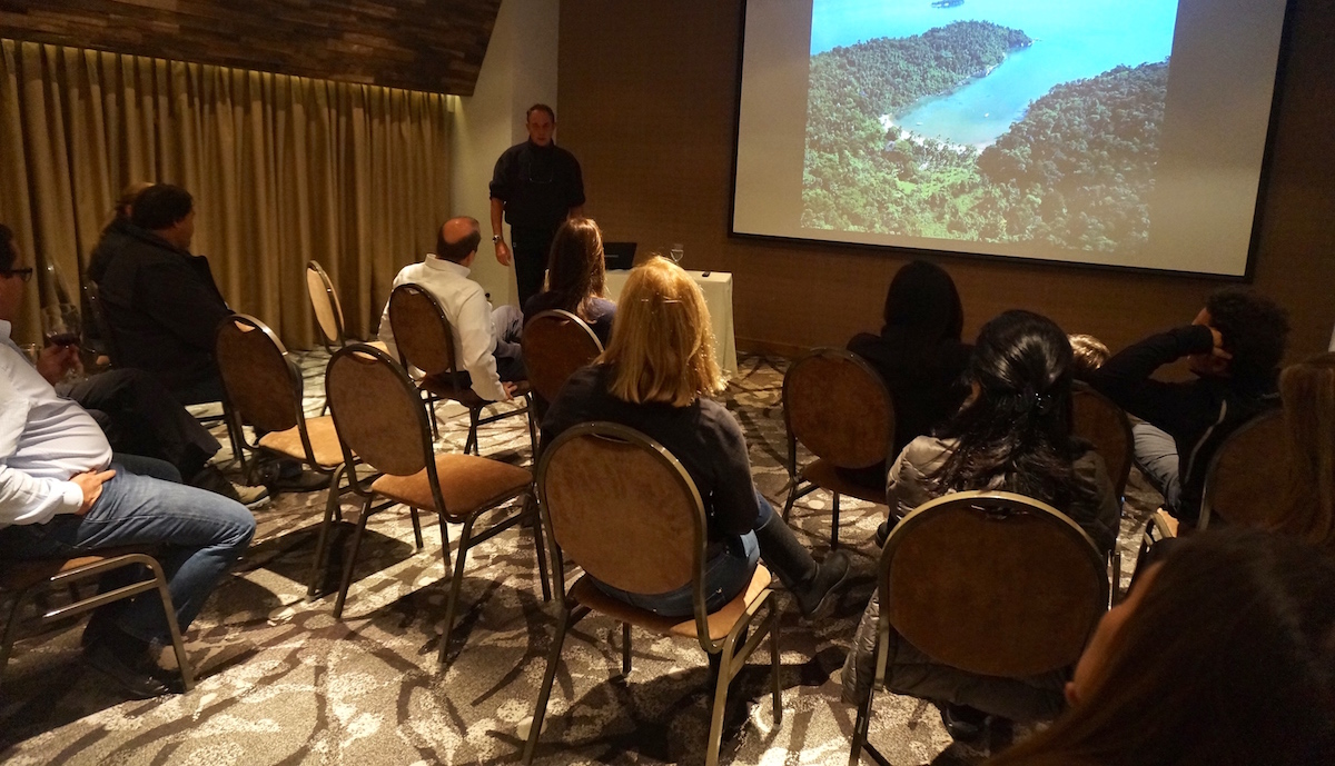 No início da noite tivemos uma palestra com o Amyr Klink em uma das salas de conferência do hotel onde foi servido queijos e vinhos. As histórias das aventuras do navegador se estendeu em uma gostosa conversa e assim surgiu a programação para os próximos dias.