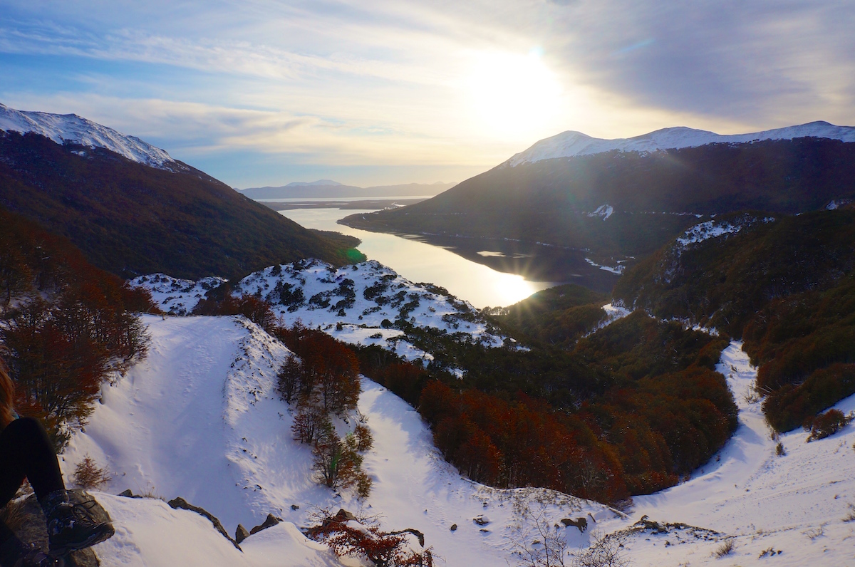 No final da trilha chegamos a um mirante atrás do hotel com uma lindíssima vista de todo o Canal de Beagle e cordilheira dos Andes.