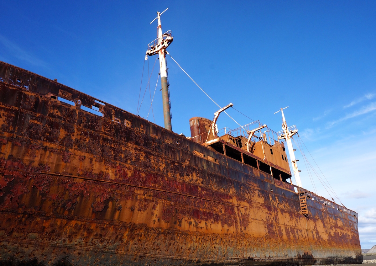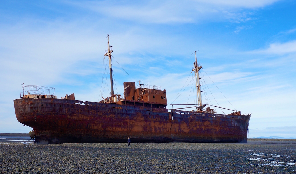 Cerca de 170 km de Ushuaia, cabo San Pablo é uma praia deserta onde 30 anos atrás ocorreu o naufrágio do Desdêmona, o cargueiro construído em 1952 encalhou nas areias em 1983 e por lá repousa até hoje transformando a paisagem do local.