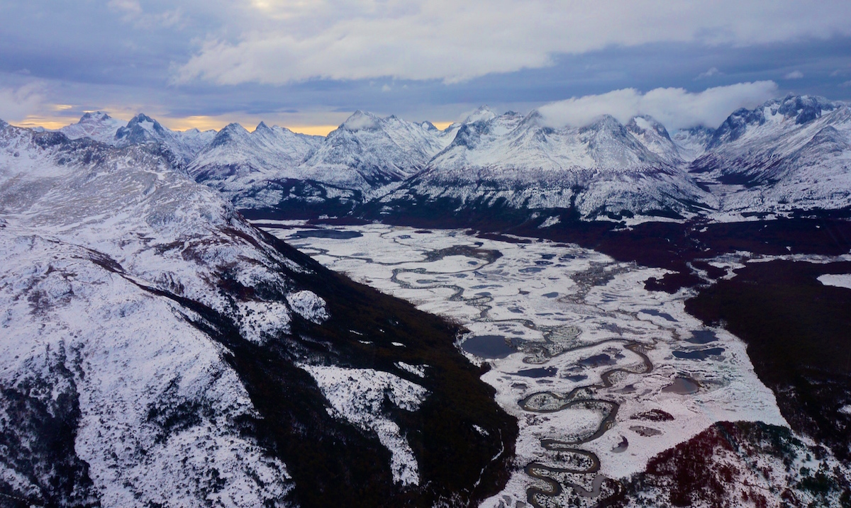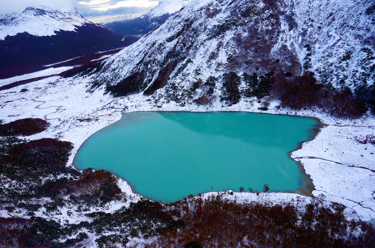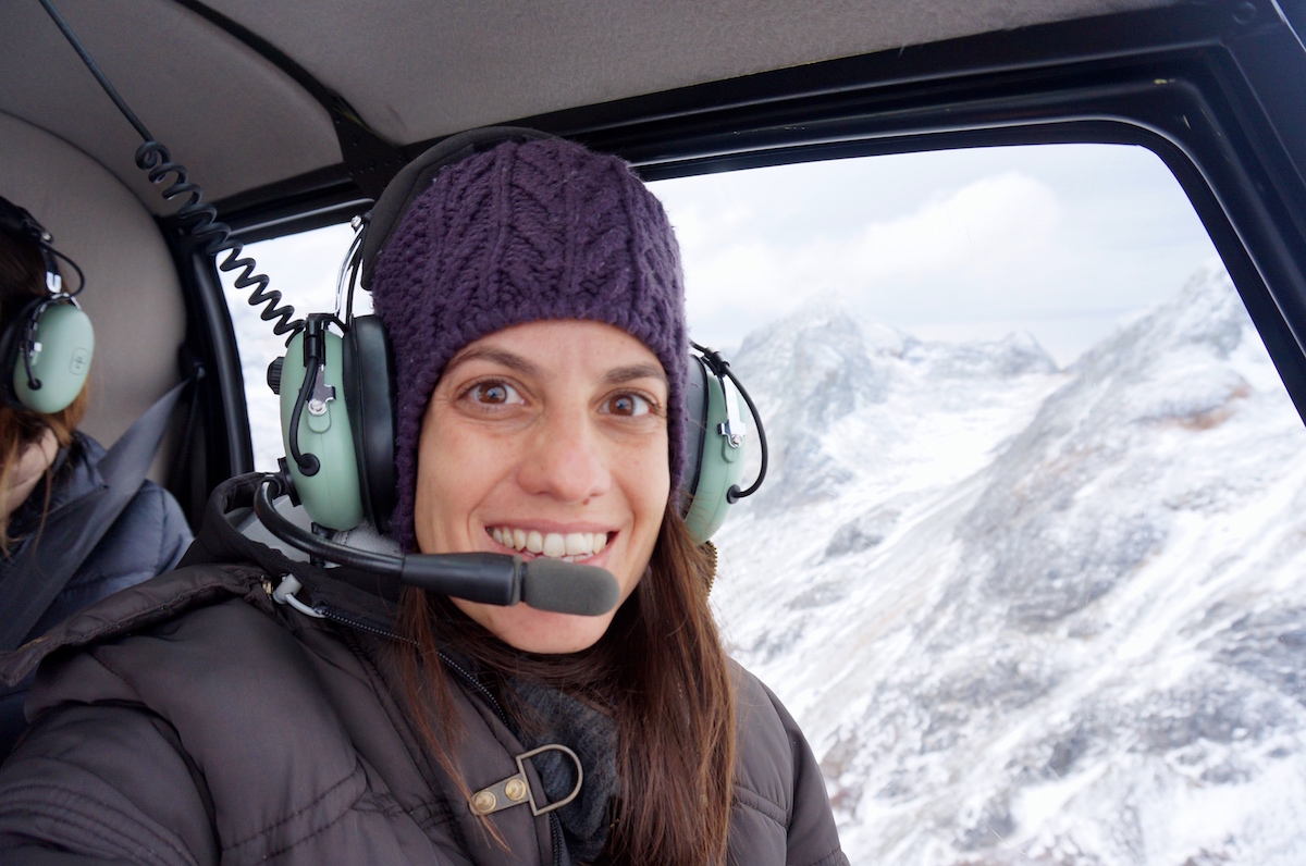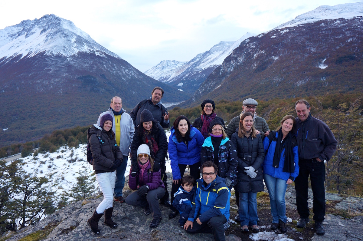 Para finalizar o dia algumas pessoas do grupo junto com a Marina Klink, seguiram para o Heli Ushuaia onde entramos em dois pequenos helicópteros e fizemos um vôo panorâmico pela Cordilheira dos Andes, laguna esmeralda e uma pequena parada no alto da montanha para estourar um espumante e brindar a viagem.