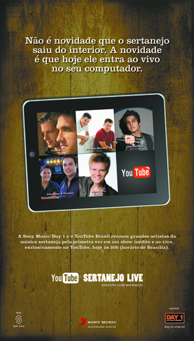 O Google novamente surpreendeu através do seu canal de vídeos, o You Tube, e realizou um dos eventos mais inovadores do ano, o You Tube Live Sertanejo. O evento resumiu-se a colocar os maiores nomes do sertanejo universitário no mesmo palco, numa produção primorosa, e transmitir ao vivo para o Brasil inteiro através da internet. Este tipo de evento somente foi feito antes internacionalmente com U2, Bon Jovi e Alicia Keys.